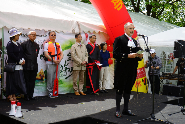 据悉,本届端午龙舟文化节活动得到了我国驻英大使馆、英国王室、当地政府和社会各界的大力支持,中国驻英国大使馆王霄巍领事专程从伦敦赶到剑桥致辞祝贺,英国女王书面致函祝贺“端午龙舟文化节”活动举行,剑桥郡郡长 Lord Lieutenant 发表贺词,剑桥市市长Cllr Nigel Gawthrope代表英国女王亲临现场,剑桥大学副校长及当地有关社团代表出席了活动。
